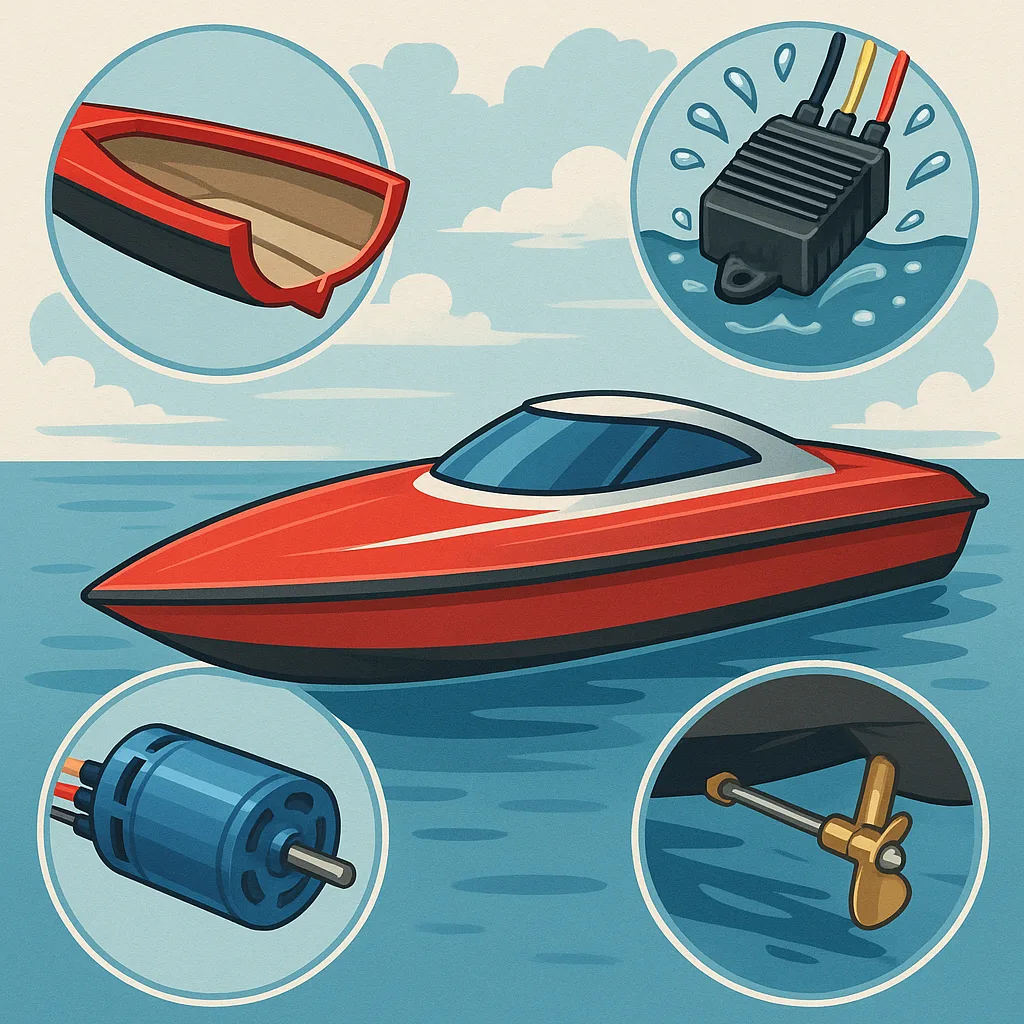 Operating RC boats is great fun but it brings distinct safety responsibilities that every hobbyist should understand before launching a model on open water. This safety overview focuses on four areas that most commonly influence whether a day at the pond ends with a floating model and a smile or a costly recovery and repair job. Prioritising safe hull design, reliable ESC waterproofing, correct brushless motor installation and well-maintained prop shafts will reduce risks to the boat, its pilot and bystanders.