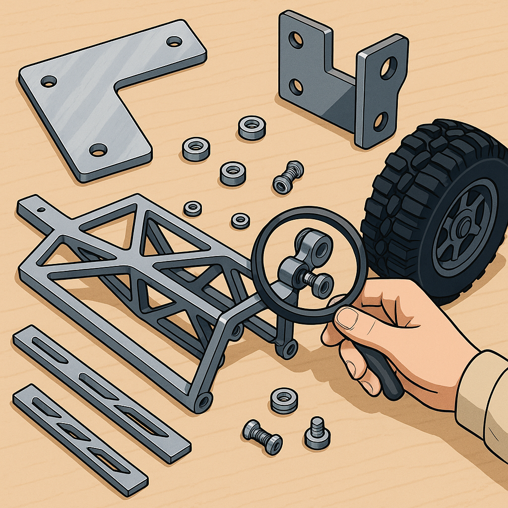 Material selection is a practical area to troubleshoot before a build, because aluminium alloys like 6061 are lightweight and dent before fracturing while 7075 is stronger but more brittle, and mild or stainless steel brings stiffness at the cost of weight and potential galvanic interaction with aluminium so isolate dissimilar metals or use compatible coatings to prevent corrosion.