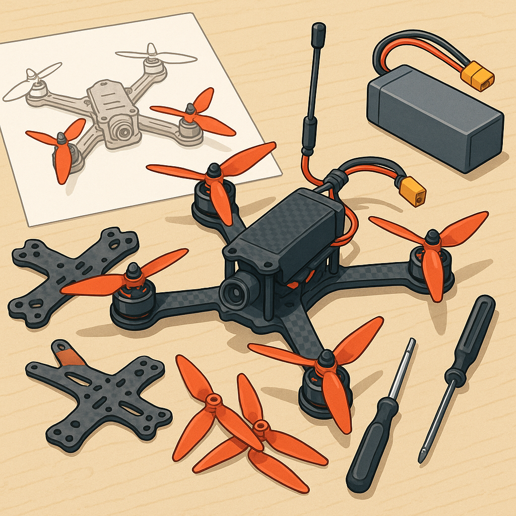 Frame projects are a great place to start because the frame determines durability, weight and flight character, and you can experiment with materials and geometry to learn quickly.