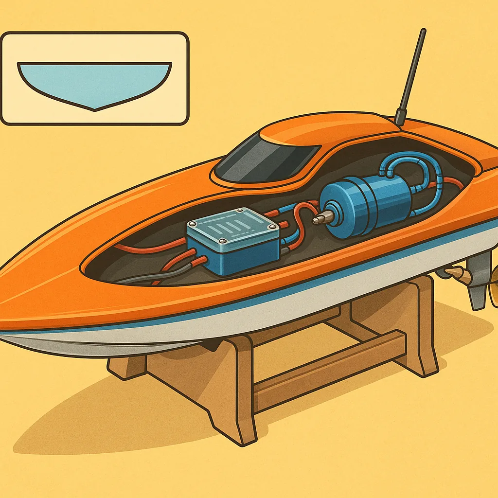 Hull shape drives behaviour more than most hobbyists expect, and small trim or weight changes can make a planing hull porpoise or a displacement hull plough instead of tracking straight. If you see bow burying on acceleration check fore-aft weight distribution, engine thrust angle and prop size before assuming the hull is at fault, because a trim tab or shifting a battery 20–30 mm aft will often cure it. For catamarans and tunnel hulls, inspect the step and chines for damage and ensure symmetrical ride height between hulls, because uneven buoyancy or a blocked spray rail will create yaw and loss of top speed.
